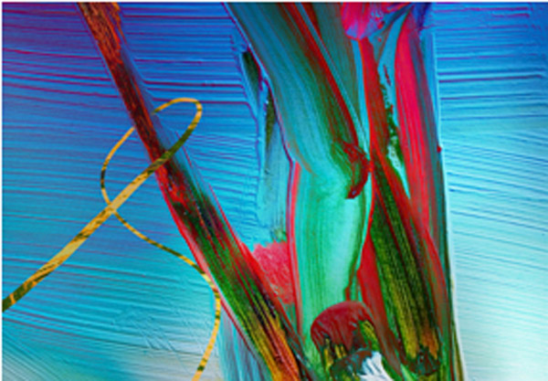 This work combines the most direct and economical of means with that of computer assisted media to make these images. Painting has been digitized and forms a base on which additional production processes have been added. The result is imagery that would never be otherwise possible. The very small has become greatly enlarged. Slight nuances of paint manipulation are amplified and allowed to perform on a monumental scale.